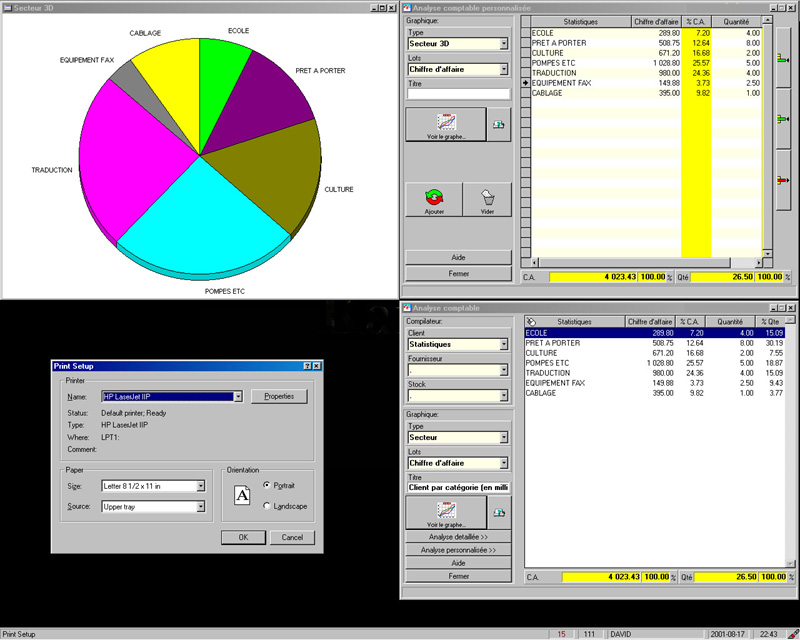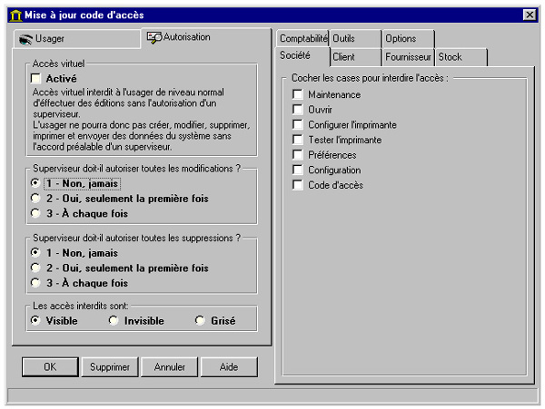 Msm-2000 intègre directement la gestion de plusieurs sociétés. Vous pouvez créer autant de sociétés que la capacité de votre disque le permet, de plus Msm-2000 comprend un séquenceur de partage de temps qui désactive automatiquement une session de travail.