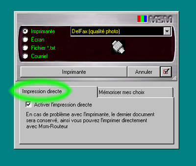 Le système de Routeur intégré à Msm-2000 conserve en mémoire votre dernière impression.